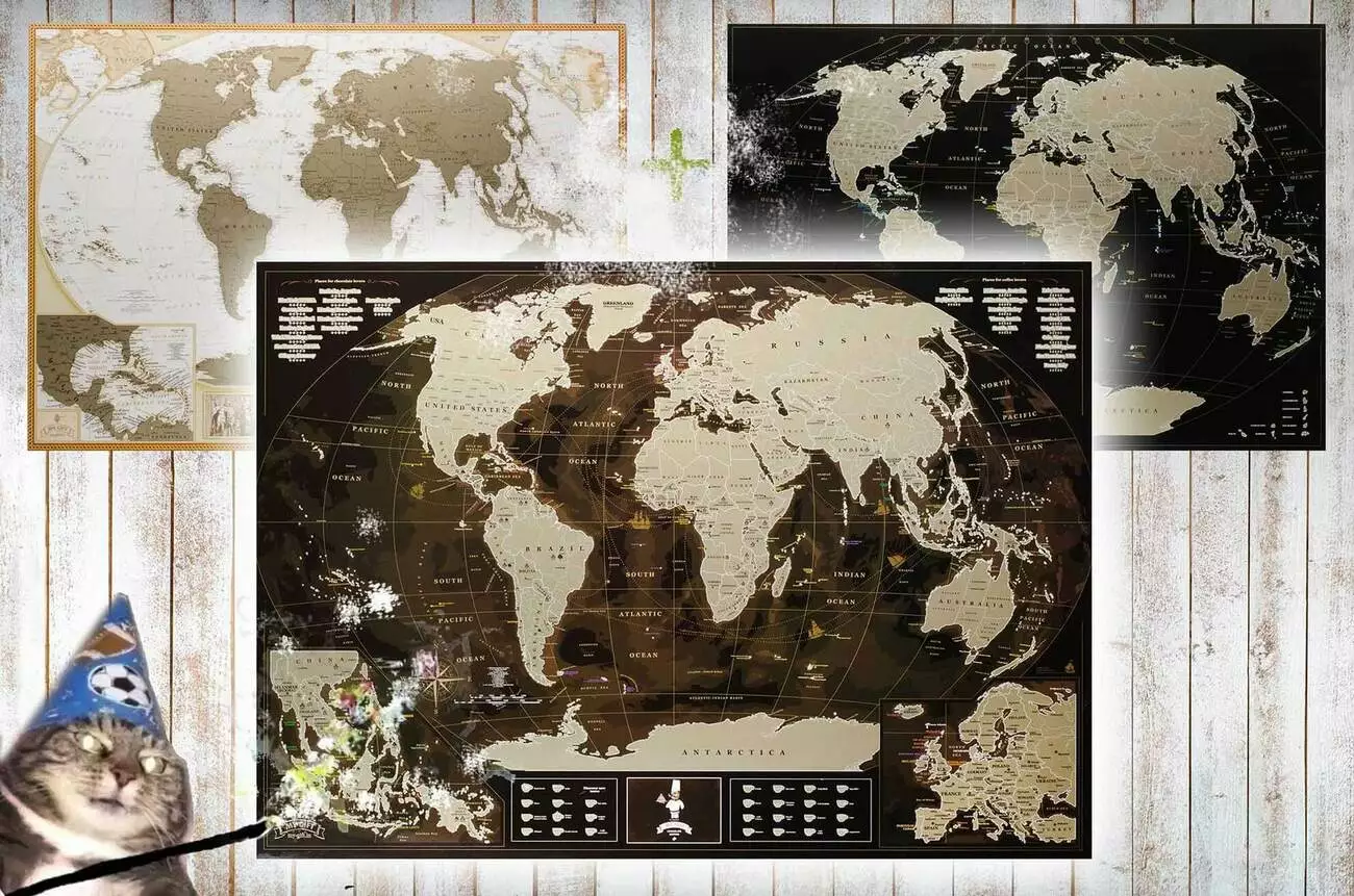 Для этих целей есть наш подарок. Скретч карта мира, на русском, на украинском языке. Крутой, яркий, красочный подарок на все случаи жизни. Карта мира понравиться сразу, так как она просто супер. Смысл этой карты, надо просто взять монетку и стереть её слой верхний покрытия.
